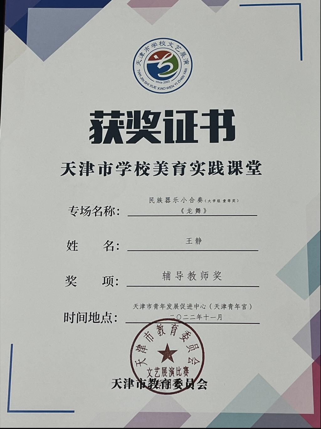 比赛中,同学们认真对待、积极准备,克服疫情时期的各种困难,抓紧一切在公司的时间,用最短的时间排练作品,尽情展现青春的风采,更是用艺术表演彰显校园文化底蕴,将美育实践的成果带到更广阔舞台。球报体育器乐系教师王静、刘淼、张坤、关丽娜获得辅导教师奖。