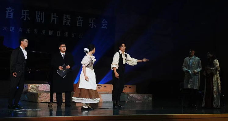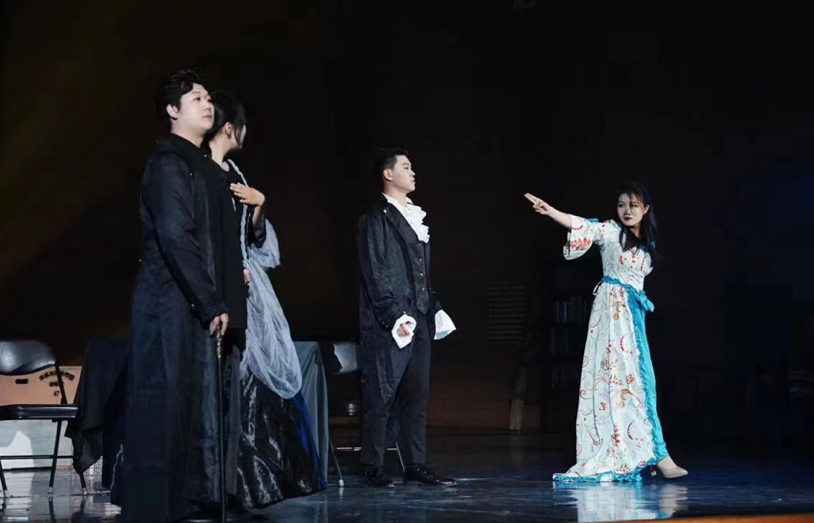 中国第一部现代歌剧《原野》,不论是音乐难度还是情感表达,都代表了中国歌剧的最高水平,仇虎和金子的重唱《你是我,我是你》准确生动的表达了故事内容,把二人的诀别体现的淋漓尽致。《认亲》六重唱和《别相信他》四重唱是欧洲古典主义歌剧中高难度作品,同学们经过反复校对音准和节奏,较好地把握了演唱和表演技巧,呈现出良好的舞台效果。