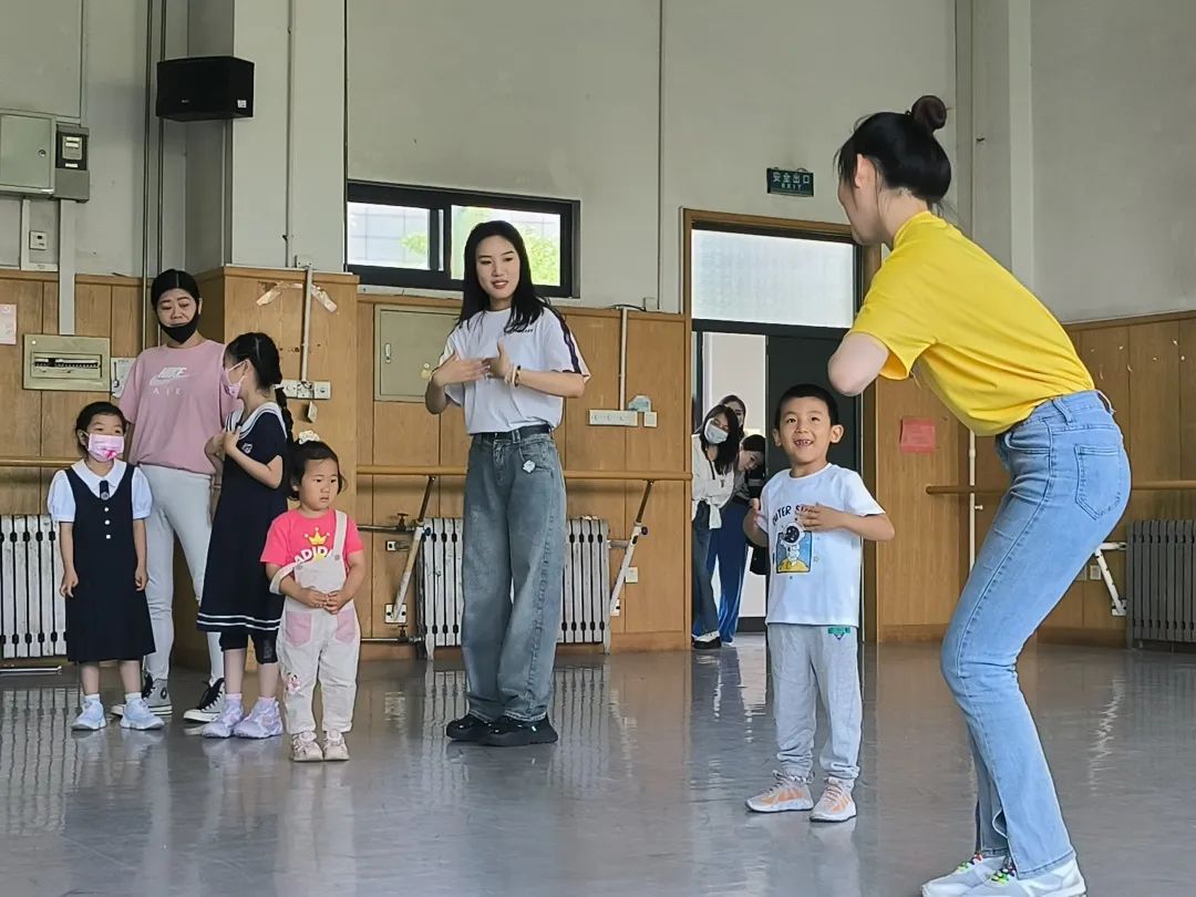 在舞蹈活动展室,志愿者带领小朋友们一起感受民族舞、国标舞、现代舞等不同种类舞蹈的独特性,孩子们兴致高昂,跃跃欲试,在共同学习了舞蹈《勇气大爆发》后,争先恐后上台展示自己,现场互动氛围活跃,充满了欢声笑语。