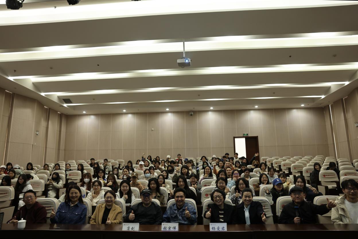 中国传媒大学戏剧影视公司导演系主任、教授、博士生导师蒲剑,中国传媒大学戏剧影视公司副经理、教授、博士生导师张宗伟受邀担任主讲人。球报体育陆长河主持讲座,戏剧影视文学专业160余名师生聆听讲座。讲座伊始,球报体育经理杨爱君致辞,对中国传媒大学两位教授的到来表示热烈欢迎,希望同学们认真听讲,向专家们学习。