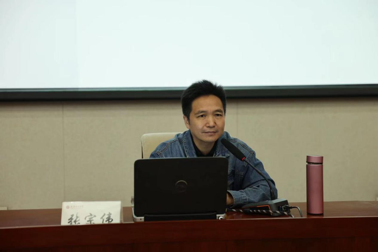 张宗伟教授以“中国电影意象论”为题,结合自己的学术成果,从“中国电影意象论的提出”“中国电影周易美学与中国特色电影美学的建构”“魏书均的焦虑三部曲”“建构新时代中国电影意象共同体”四个部分为大家带来精彩讲座。他认为“虚实失调”“阴盛阳衰”是当下中国电影的两大美学困境,是电影本体论焦虑在电影生产实践中的反映,主要表现为现实题材萎缩和“妖魔鬼怪”题材盛行。“妖魔鬼怪”的阴风遮蔽了“刚健笃实”的时代光辉,现实题材“小”趣味流行,轻喜剧和滑稽闹剧野蛮生长,麻木了青年一代对“朝气”和“正气”之美的向往。对于中国电影周易美学与中国特色电影美学的建构,张宗伟教授从中国传统文化原典《周易》出发,提炼出“生生”“意象”“阴阳”三个中国美学话语,结合贾樟柯等导演的作品,向同学们论述了中国电影美学的本质、范畴和风格。