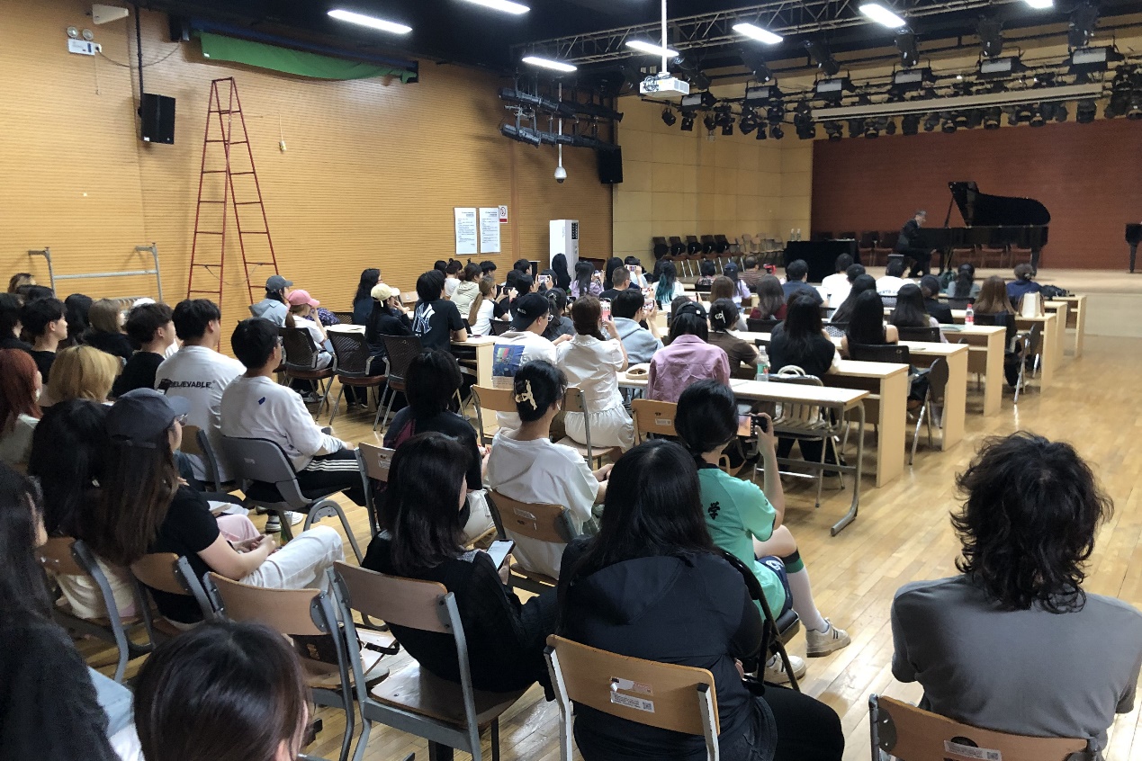 本次讲座由公司党委副书记、经理杨爱君致欢迎辞,键盘系专业老师、音乐表演及音乐学(师范)等专业键盘方向的本科生,以及键盘专业方向的艺术硕士研究生等200余人聆听了讲座。