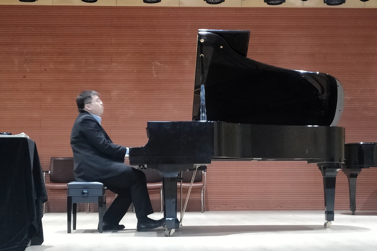 随后,陈韵劼教授以李斯特音乐会练习曲《哀诉》《轻盈》,以及帕格尼尼练习曲《钟》为例,从作品风格、作家气质、音乐要素、技术技巧运用等不同角度,将研习李斯特练习曲时如何在复杂的技术中结合音乐的需要,合理运用技术技巧与研习方法,将这些“武”曲以“文”弹的方式,最大限度的结合自身能力将作品的表现力加以最大程度的诠释,进行了细致且详尽的讲解。