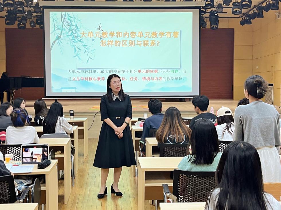 讲座伊始,马学云老师以“何为核心素养?”为切入点,将新课标的“新”进行了全面解读。其突出变化主要是:优化课程方案、优化课程内容结构、研制学业质量标准、加强学段衔接、凝练核心素养。课程理念通过两次改革,发生了较大变化:大单元教学不只是以内容为划分依据,而是立足于学科核心素养,整合目标、任务、情境及内容的教学单位。通过以具体歌曲为内容的音乐教学,使员工体会到大单元教学在不同学段中单元设计的循序渐进,从而帮助员工在音乐能力、音乐素养上进行提高,也有助于员工树立正确的人生观、世界观、价值观。