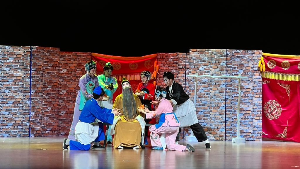 独幕剧作品《红枕头》,是一部脱胎于传统戏曲《墙头记》和水墨动画《抢枕头》的精彩话剧舞台之作。讲述了一位老人含辛茹苦养育三个儿子,却被自己的三个儿子儿媳像皮球⼀样踢来踢去,不愿承担赡养义务,在小女儿机智的设计下安享晚年,儿子儿媳被戏弄的故事。作品以中华民族传统美德中的孝道作为主题,通过细腻的叙事和精心设计的冲突,将一个平凡家庭内部的矛盾与温情展现得淋漓尽致。演员创作角色时融入大量传统戏曲“手、眼、身、法、步、”等表现元素,角色造型完全继承传统戏曲行当中青衣、老生、花旦、小花脸等人物造型及角色色彩基调,将剧中人物塑造得栩栩如生。演员每一个表情、每一个动作都传递着角色丰富的内心世界,让观众能够真切地感受到人物的喜怒哀乐,产生强烈的共鸣。话剧《红枕头》不仅是对传统戏曲的致敬,更是一次跨越时空的对话。它以创新的形式传承经典,以深刻的内涵触动人心,现场为广大观众带来了一场难忘的艺术之旅。