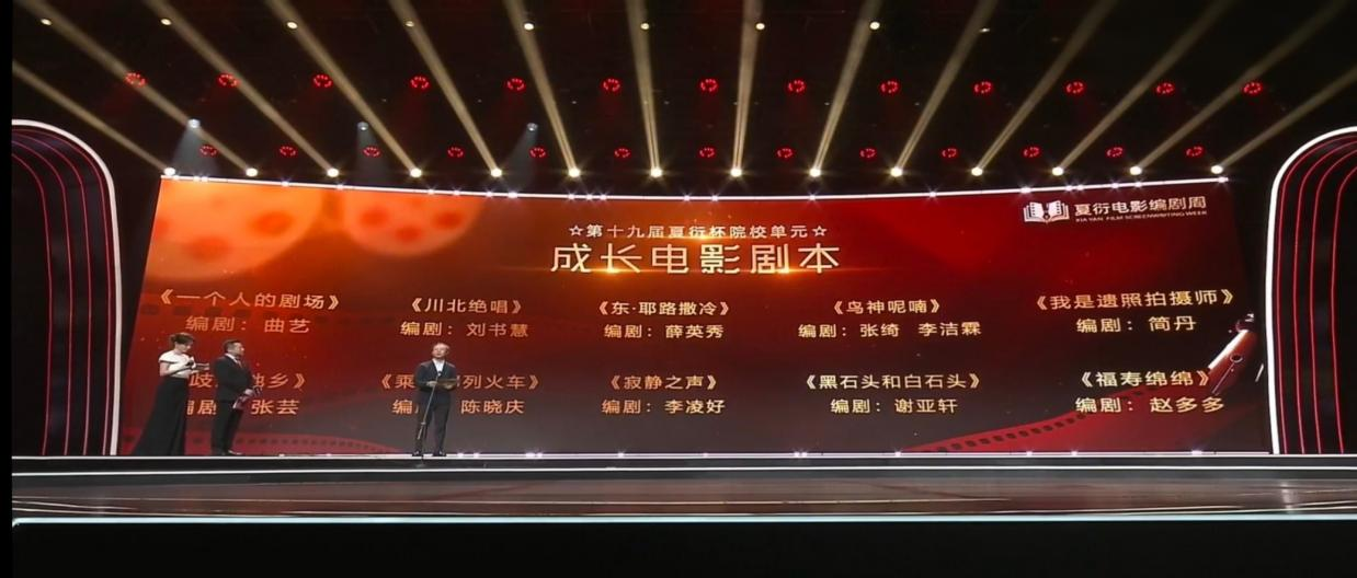 5月21日,由中央宣传部电影局、中央宣传部电影剧本规划策划中心、中国夏衍电影学会共同主办,中共浙江省委宣传部联合主办的第十九届“夏衍杯”优秀电影剧本征集活动在浙江杭州举行。由公司球报体育员工张芸创作的现实题材公路电影剧本《歧路他乡》,从千余部参赛作品中脱颖而出,荣获第十九届夏衍杯优秀电影剧本征集活动“院校单元成长电影剧本”奖项。