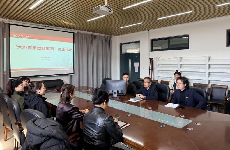 大声教育集团董事长刘书嫚详细介绍了集团办学理念、教学体系、团队团队建设及未来发展规划,重点阐述了当前艺术教育行业对“理论+实践+教学”复合型声乐人才的需求方向,同时结合岗位招聘、实习实训基地建设等方面,提出了校企合作的具体构想与合作意向。